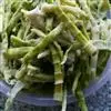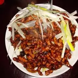 京酱肉丝,是一道知名度很高的菜肴,它是北京菜中的经典代表菜之一。制作时选用猪瘦肉为主料,辅以甜面酱、葱、姜及其它调料,用北方特有烹调技法“六爆”之一的“酱爆”烹制而成。 成菜后,咸甜适中,酱香浓郁,风味独特。
