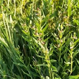 直立草本。茎高9-40厘米,纤细,自基部多分枝,或植株矮小不分枝,被白色疏柔毛。叶线状长圆形至线状披针形,长1.3-2.8(3.3)厘米,宽2-4(7)毫米,先端渐尖或急尖,基部渐狭或楔形,边缘具疏而不明显的浅锯齿,上面榄绿色,下面较淡,两面均被疏短柔毛及棕色凹陷腺点;叶柄长3-5毫米,被疏短柔毛。