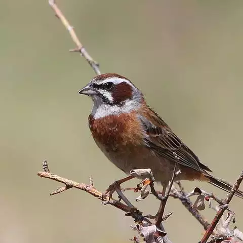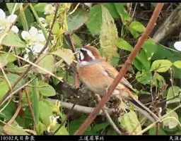 栗斑腹鹀:属小型鸣禽。体重19-25克,体长145-167毫米。头顶至背栗红色,眼先和颧纹黑褐色,…