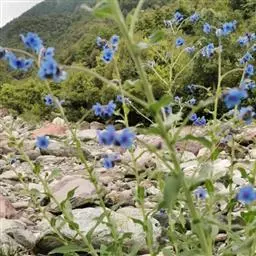 蓝蓟是紫草科蓝蓟属二年生草本植物,茎直立,有开展的长刚毛和密短伏毛,…
