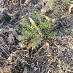 性状:幼苗多卷曲成团状,灰白色或灰绿色,全体密被白色茸毛,绵软如绒。茎细小,长1.5—2.5厘米,直径0.1—0.2厘米,多弯曲或已折断;分枝细,基部较粗,直径约0.2厘米;除去表面的白色茸毛后可见明显纵纹;质脆,易折断。叶具柄,多皱缩卷曲,展平后叶片呈一至三回羽状分裂,叶片长l一3厘米,宽约1厘米;小裂片卵形或稍呈倒披针形,条形,先端锐尖。气清香,味微苦。