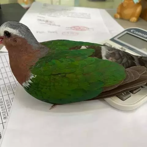 绿皇鸠体形比绿鸠类和果鸠类大,体长36-38厘米,体重508-600克。嘴也较大,嘴基扩张,…