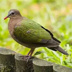 绿背金鸠体长约25厘米,是中等体型、尾甚短的地栖型斑鸠。下体粉红,头顶灰色,额白,腰灰,两翼具亮绿色。…
