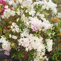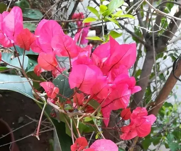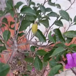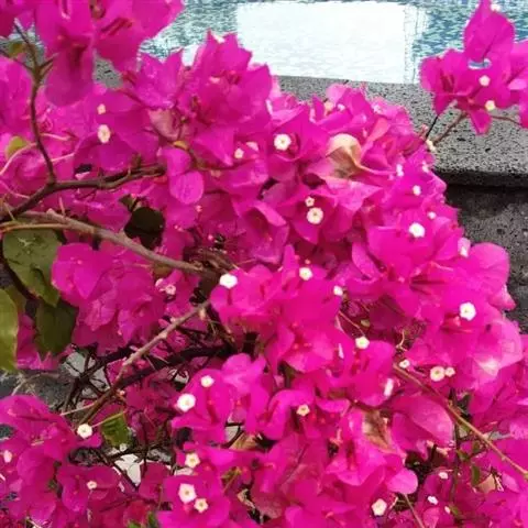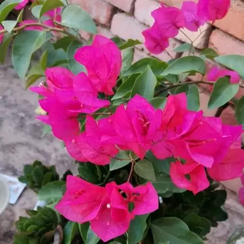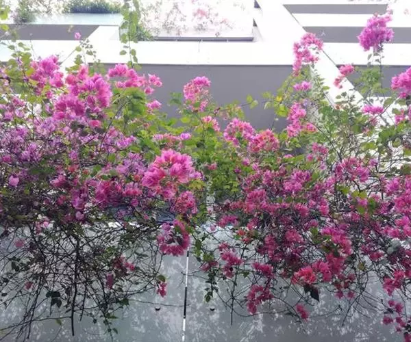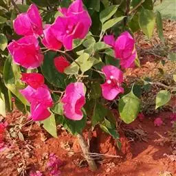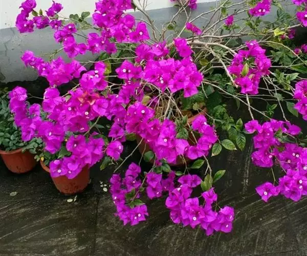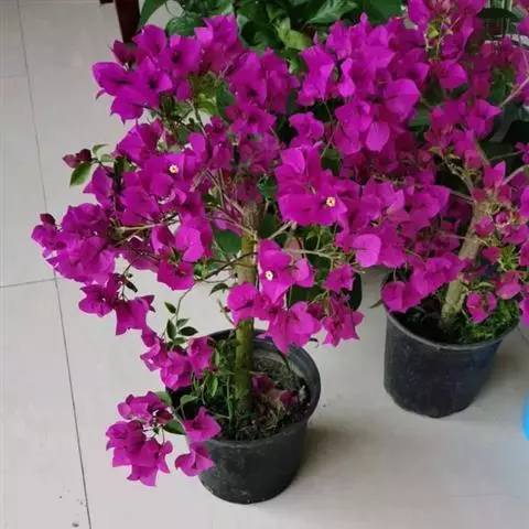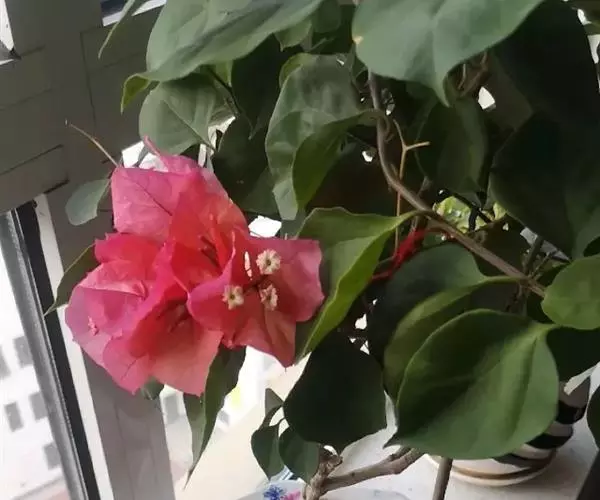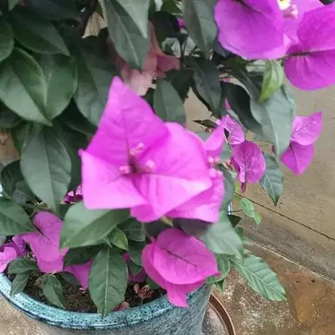 叶子花 移栽以及移栽后的管理:移栽时要注意的一点是,即打算移栽前的2天至3天不要浇水,以便使营养钵内的泥土硬结成团,避免移栽时土壤散开,导致长出的新根与泥土分离,影响移栽后的成活和生长。移栽时,先用枝剪或小锯片在营养钵外紧挨营养钵壁的地方将枝条剪断或锯断。然后,小心地将营养钵去掉,再将植株移栽在准备好的花盆内。盆土以园土拌腐叶土或岩山土为好,盆土内最好还拌上一些经过发酵的菜枯或豆饼枯之类的基肥。移栽后再在植株旁边插上木棍将植株捆扎固定。然后浇水,水要浇透。如果阳光太强,可将花盆放在阳台内遮阳1天至2天,然后再放到阳台上晒太阳,按正常的管理方法管理。