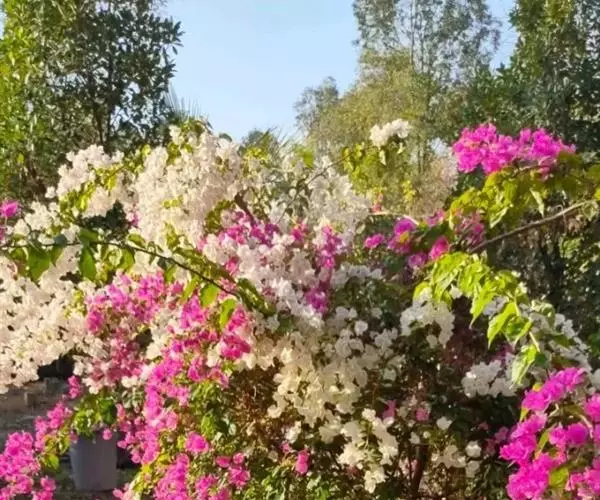 三角梅 性喜温暖、湿润的气候和阳光充足的环境。不耐寒,耐瘠薄,耐干旱,耐盐碱,耐修剪,生长势强,喜水但忌积水。要求充足的光照,长江流域及以北地区均盆栽养护。对土壤要求不严,但在肥沃、疏松、排水好的沙质壤土能旺盛生长。