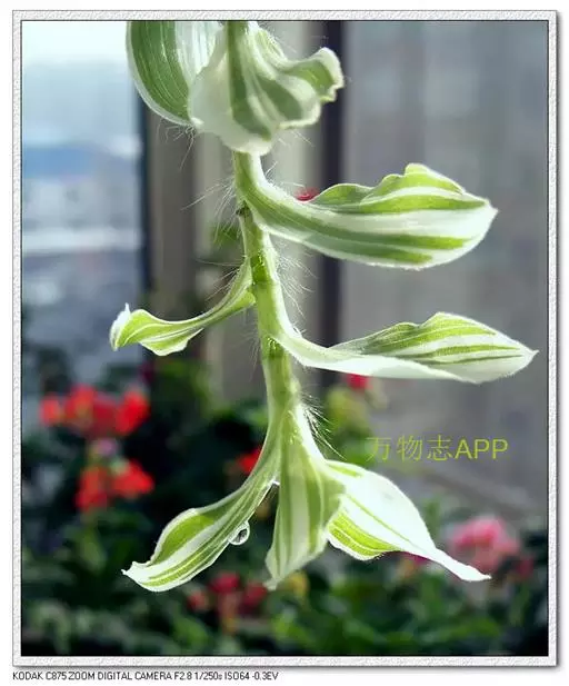 为多年生常绿草本植物。植株匍匐或攀援向上生长,茎圆,红褐色,肉质,长约2米