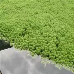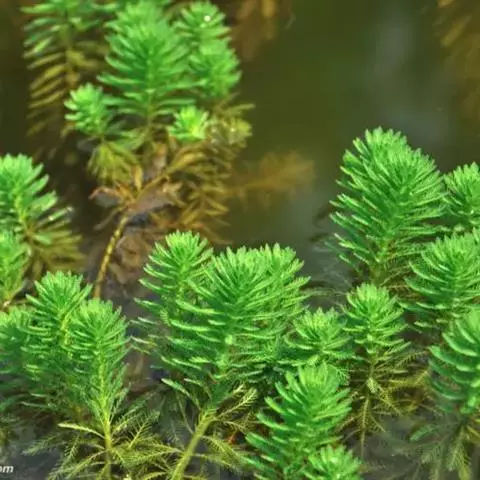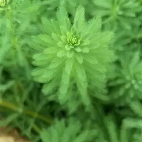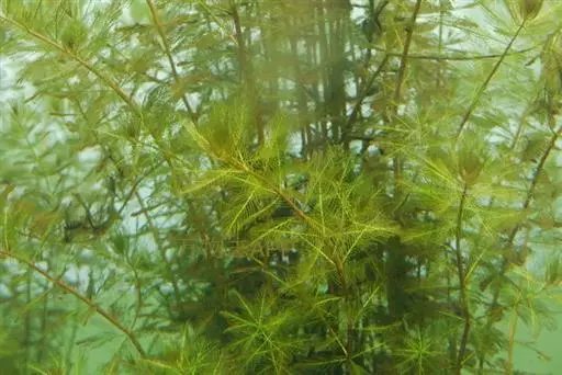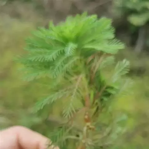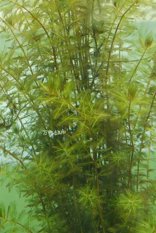 穗状狐尾藻,别名:泥茜、聚藻、金鱼藻,拉丁文名:Myriophyllum spicatum L. 小二仙草科、狐尾藻属多年生沉水草本。根状茎发达,在水底泥中蔓延,节部生根。茎圆柱形,叶柄极短或不存在。花两性,单性或杂性,雌雄同株,单生于苞片状叶腋内,由多数花排成近裸颓的顶生或腋生的穗状花序,柱头羽毛状,向外反转,大苞片矩圆形,全缘或有细锯齿,较花瓣为短,小苞片近圆形,边缘有锯齿。分果广卵形或卵状椭圆形,具4纵深沟,沟缘表面光滑。花期从春到秋陆续开放,4-9月陆续结果。