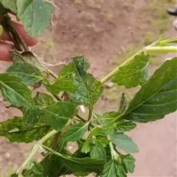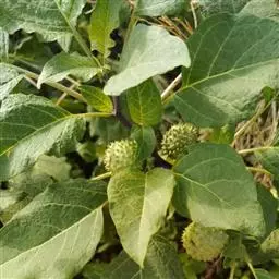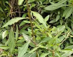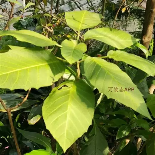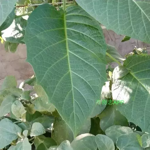 小乔木,高2米余。茎粗壮,上部分枝。叶卵状披针形、矩圆形或卵形,顶端渐尖或急尖,基部不对称楔形或宽楔形,全缘、微波状或有不规则缺刻状齿,两面有微柔毛,侧脉每边7-9条,长9-22厘米,宽3-9厘米;叶柄长1-3厘米。