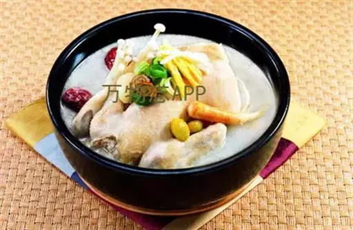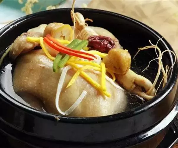 参鸡汤是一道以高丽参、童子鸡和糯米煲成的中国古老的广东粤菜汤类家常菜之一,传至韩国后成为最具代表性的韩国宫中料理之一。具有良好的补血、补气、养颜、安神、补充体力之功效。