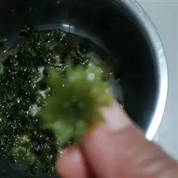 咸盐佐料:粗盐 1勺、胡椒粉 少许、炒熟的芝麻压碎 1勺。