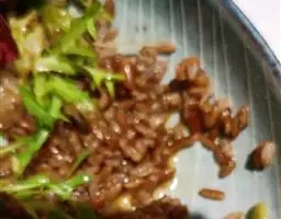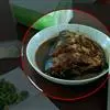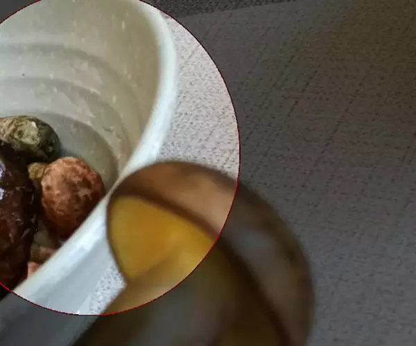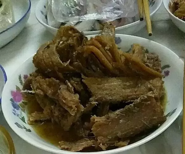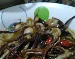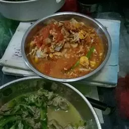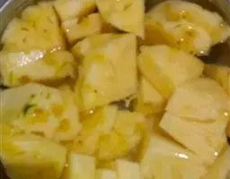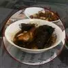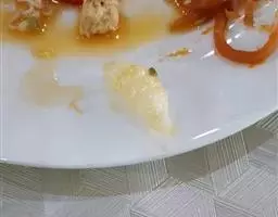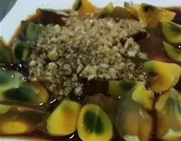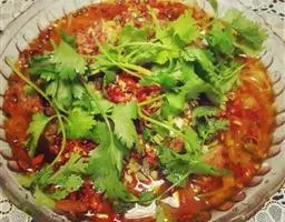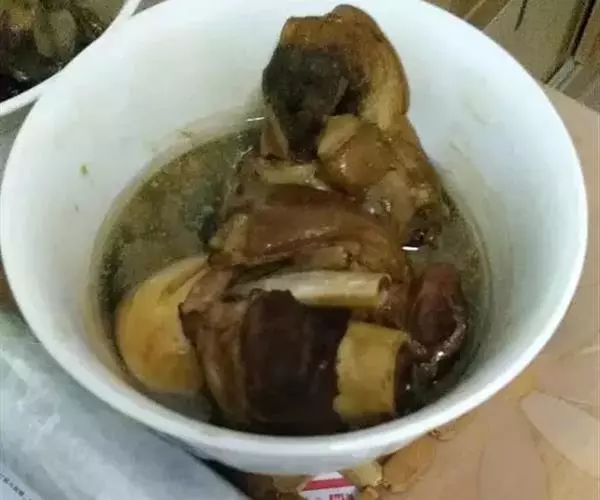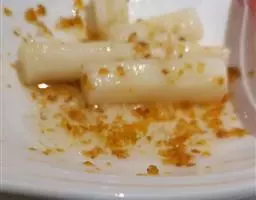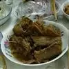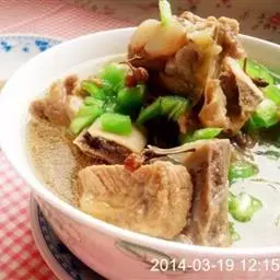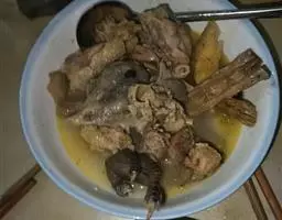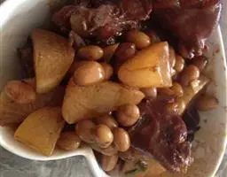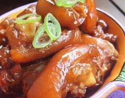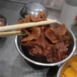 4、取煲好牛杂及适量的牛杂汤,再放入适量萝卜,小火慢熬,熬半小时(作用是使萝卜和味)关火即可出售。出售时用剪刀把牛杂剪成若干小块装入一次性小碗里(在西关的牛杂,是完全切好再煲的,就不用剪的),应顾客要求加入少许牛杂汤,放入辣酱或甜酱,撒香葱即可。