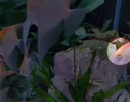 症状:全身布满比盐巴颗粒大一些的小白点,鱼只会不断的用身体摩擦底沙或水族箱中的装潢物品,妄图擦掉身上的白点虫。