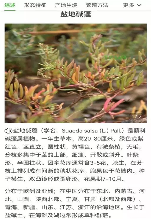 盐地碱蓬含有蛋白质、膳食纤维、多糖、色素、黄酮类化合物等,籽粒含有丰富共轭亚油酸,具有较高的食用价值和药用价值。