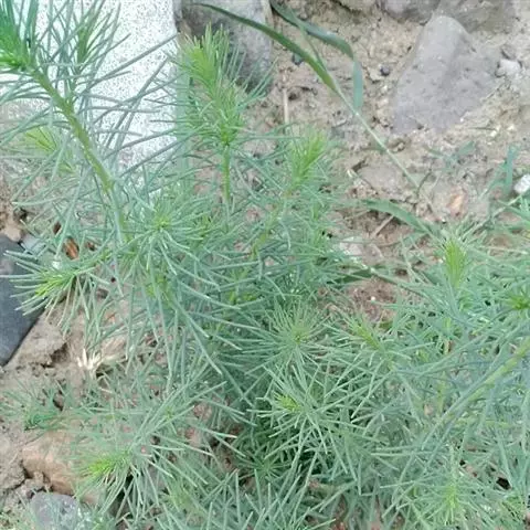 一年生草本,高20-80厘米,绿色或紫红色。茎直立,圆柱状,黄褐色,有微条棱,无毛;分枝多集中于茎的上部,细瘦,开散或斜升。叶条形,半圆柱状,通常长1-2.5厘米,宽1-2毫米,先端尖或微钝,无柄,枝上部的叶较短。