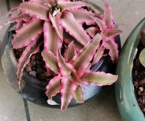 栽培3-4年的姬凤梨,每年开花以后,都要从基干的基部发出些蘖芽,这种蘗芽生长一段时间后,必须切离母体,否则蘗芽的旺盛生长会引起母株萎缩,直至最后死亡。莳养者知道了它的这种生长习性以后,在5-9月这段时间,便可切取蘖芽,进行分株繁殖分株时,掀开叶片,用锋利快刀,从根茎着生处切取蘖芽,切后母株和子株的刀口,都要涂抹草木灰消毒。切下的蘖芽要置于荫蔽通风的地方,待刀口干缩后再进行分株苗栽培。栽培时苗床可用大口浅盆,基质可用高温消毒处理的素砂土。按6厘米×6厘米的株行距,把分株苗植于大花盆中。5-7天内只能用细孔喷壶向叶面和土表喷雾状水,7-10天植株伤口已基本愈合后,才可把水喷透。以后保持盆土干润即可,切忌浇水过多。因为新栽培的植株,基部不具备吸附能力,温高水多,容易引起刀口感染腐烂,造成分株失败。采取这样的分株方法成活率可达100%。分株后主要是保持适当的温度,如果能把温度控制在24-28℃的范围内,分株苗就发育快。一般经过十天半月就有新根出现,30-40天后,就可按正常的莳养方法进行养护管理。
