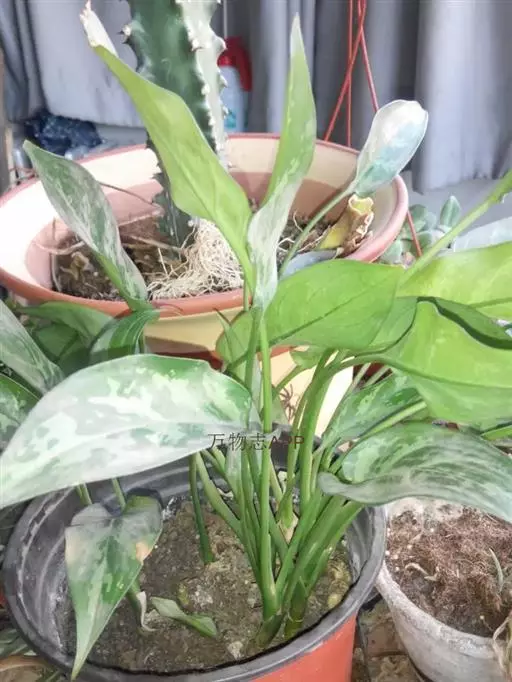 斜纹粗肋草(学名:Aglaonema spp)属天南星科多年生草本植物,易于栽培,多用于盆栽观赏。