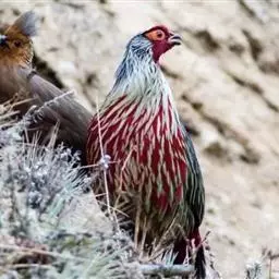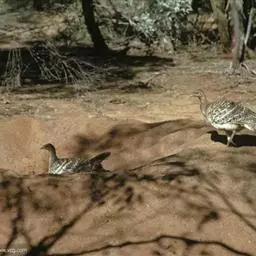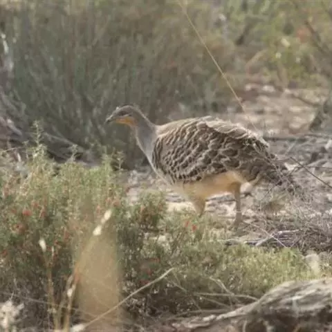 眼斑冢雉:体长60-65厘米,羽毛呈浅褐色,有许多白斑。它们的脖子很长,且光秃无毛。雄鸟的脸呈火红…