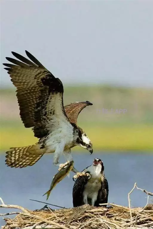 芬兰鹗湖面一次成功捕捉两条鳟鱼