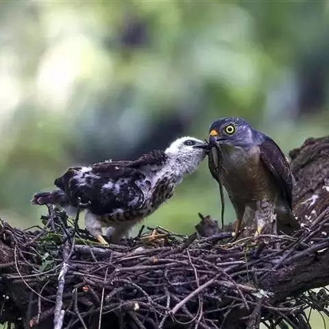 鹰雕,是隼形目鹰科鹰雕属大型猛禽,俗称熊鹰、赫氏角鹰。其上体暗褐色,头后冠羽常竖立起,…
