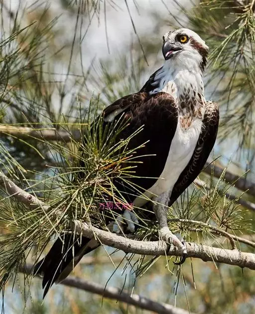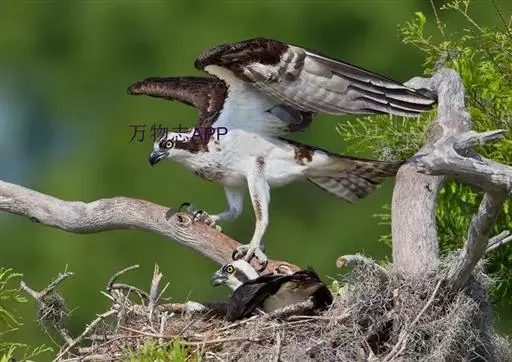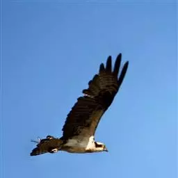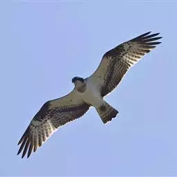鹗(学名:Pandion haliaetus):是隼形目、鹗科、鹗属仅有的一种中型猛禽。雌雄相似。体长51-64厘米,体重1000-1750克。头部白色,头顶具有黑褐色的纵纹,枕部的羽毛稍微呈披针形延长,形成一个短的羽冠。头的侧面有一条宽阔的黑带,从前额的基部经过眼睛到后颈部,并与后颈的黑色融为一体。上体为暗褐色,略微具有紫色的光泽。下体为白色,胸部的暗色纵纹和飞羽,以及尾羽上相间排列的横斑均极为醒目。虹膜淡黄色或橙黄色,眼周裸露皮肤铅黄绿色,嘴黑色,蜡膜铅蓝色,脚和趾黄色,爪黑色。