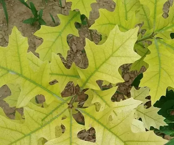 夏栎 夏栎不仅能耐-40℃低温,而且耐高温干旱。在年降水量在220毫米左右、蒸发量2130毫米、气温高达38℃以上条件下,夏栎未发生日灼现象,夏栎抗大气干旱。夏栎为深根系树种,抗风能力强,并且耐短期水湿和烟尘,萌蘖力较强,但幼树嫩枝抵抗晚霜性能差。此外,该树种较耐盐碱,适应范围较为广泛,在干旱贫瘠砾石砂壤土上栽培也能正常生长。在土层较厚、供水条件良好的条件下,长势旺盛健壮、根深叶茂。