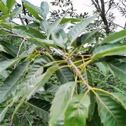 夏栎 采种:选择生长健壮、果实品质优良、无病虫害的成年优良母树采种,9月底-10月初果实开始变黄,风吹会大量脱落,表明种子已经成熟,即可采收。采回的种子及时在潮湿遮阴处存放,或直接用湿沙子混匀堆放在窖内。待播种地整好后,及时秋播或待来年春播。夏栎种子无休眠期,严禁将种子放在干燥处或阳光直射处贮藏,使种子丧失发芽能力。