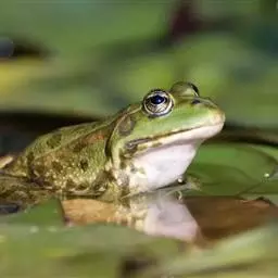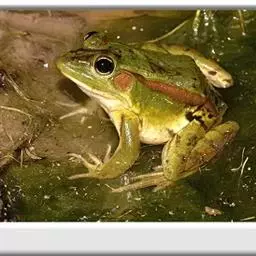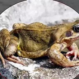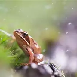 林蛙又称雪蛤,广泛分布于中国北部地区,西伯利亚、朝鲜也有分布。林蛙与蛤蟆和田鸡是完全不同的动物。林蛙头部扁平,四肢较细长,体长70~80毫米;鼓膜圆,鼓膜部有三角形黑褐色斑;体背多为土黄色,一般在疣上散有深色的斑点;背褶在鼓膜上方斜向外侧弯曲。林蛙以陆栖为主,常在没有强烈光照、湿润凉爽的环境中生活,主要栖息于山林、沼泽、水塘、水坑和水沟等静水水域及其附近,以林间草地为多。林蛙行动敏捷,跳跃力强,主要以多种昆虫为食,例如苍蝇、蚊子等 。