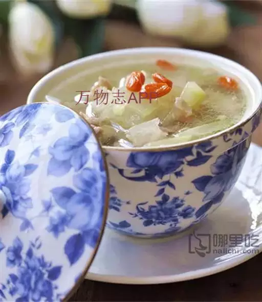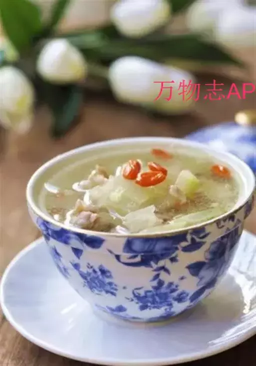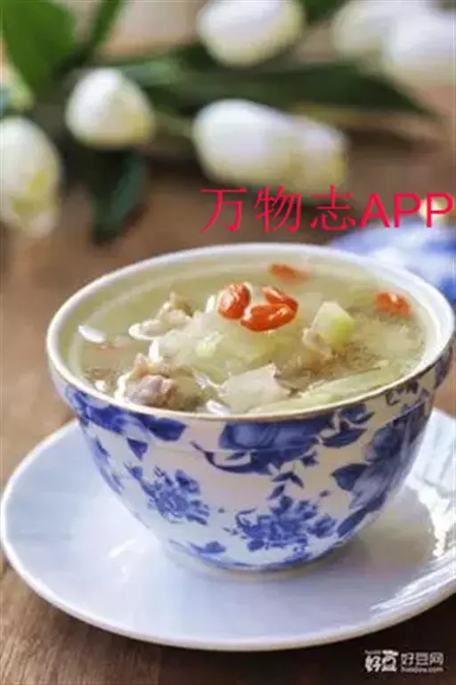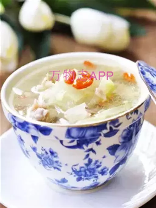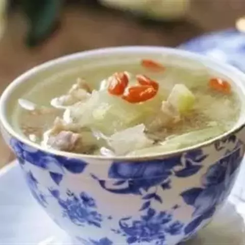 原料:冬瓜100克,瘦羊肉80克,枸杞3克,生姜10克,葱10克。