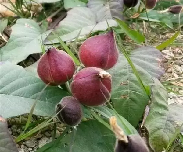 多年生缠绕草本。根肉质多分枝。茎圆柱状,时而螺旋扭曲,有3-5翅,被短柔毛,幼茎有时被毛较密,老时近于无毛。叶形不一,心状圆形、卵形、宽卵形、卵状披针形或披针形,叶形大的长4-14厘米,宽3.5-14厘米,叶形较小的长4-5.5厘米,宽1.2-2.5厘米,先端锐尖、渐尖或钝,基部心形、截形或楔形,边缘全缘或浅裂,叶面被小刚毛,老叶近无毛,背面被短柔毛,侧脉6对,在叶面平或稍突起,于背面突起;叶柄长2-10厘米,有狭翅,密被短柔毛或有时近无毛。聚伞花序生于叶腋,花序梗长1.5-2厘米,通常有2朵花;苞片显著,长圆形或卵状长圆形,纸质,长1-2.5厘米,具小短尖,两面被短柔毛;花梗粗壮,长1.5-2厘米,与花序梗均密被短柔毛;萼片宽卵形或卵状圆形,在外2片革质,长1.5-2厘米,外面密被短柔毛,内面无毛,在内3片稍短,近膜质,无毛,结果时萼片增大,长2.5-3厘米;花冠白色或粉红色、紫色,宽漏斗状,长约4厘米,无毛,外面具黄色小腺点,冠檐5裂,裂片圆;雄蕊内藏,花丝下部被短柔毛,花药纵向扭曲;花柱内藏。蒴果扁球形,直径约1.5厘米。种子4,卵圆状三棱形,径约6毫米,黑色,无毛。