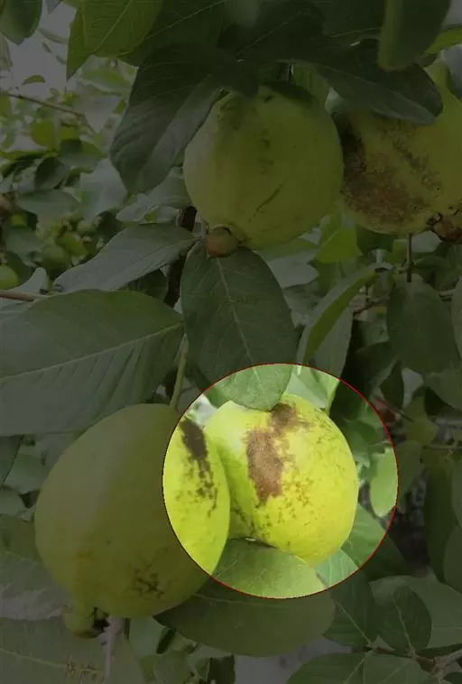 防治方法:应从幼果开始至果实膨大期,用防病药物如800倍托布津,或500倍铜氨合剂喷射果面,并做好冬季喷药清园。