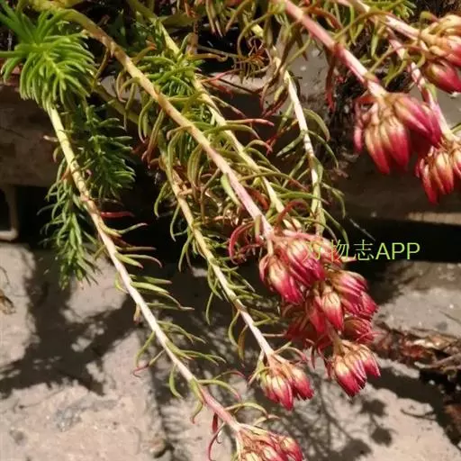 多年生草本。根颈粗壮,分枝,地上部分常被有残留的老枝。花茎聚生主轴顶端,长5-28厘米,直立或弯曲,不分枝。叶互生,线形至宽线形,长7-10毫米,宽1-2毫米,先端稍急尖,基部无柄,全缘。花序聚伞状,有4-7花;萼片5,线状披针形,长4毫米,宽0.7-0.9毫米,先端渐尖,基部宽;花瓣5,白或红色,披针状长圆形,直立,长8-11毫米,宽2.3-2.8毫米,先端渐尖,有较长的短尖,边缘平直,或多少呈流苏状;雄蕊10,较花瓣短,对萼片的长7毫米,对花瓣的长3毫米,着生花瓣基部上3毫米处;鳞片5,横长方形,长0.4毫米,宽0.8-1毫米,先端微缺;心皮5,卵状长圆形,直立,长6-9毫米,基部1-1.5毫米合生;种子长圆形,长1.2毫米,有微乳头状突起,有狭翅。花期6-7月,果期8月。 [1-2]