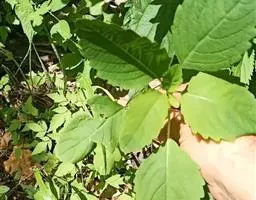 叶互生,具柄,叶片膜质,长圆形或长圆状披针形,长5-9 (-12) 厘米,宽2.5-4厘米,顶端渐尖,基部楔状下延成长1-2.5的叶柄,常具2球形腺体,边缘具圆齿状齿,齿端微凹,具小尖,侧脉9-12对,上面深绿色,下面淡绿色。