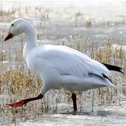 雪雁是鸭科雁属鸟类,雁属中体形大,个体重的鸟类。羽毛洁白,翼角黑色。飞行时双翼拍打用力,振翅频率高。…
