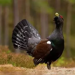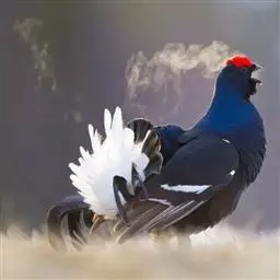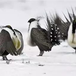 在繁殖季节会举行多姿多采、美仑美奂的炫耀表演。炫耀表演往往在“比舞场”或“竞技场”上进行,由许多只雄鸟一起参加,称为“比舞”表演。各种炫耀方式中,它们先上下扇动有尖头的尾巴,再鼓起胸前两块黄色气囊,把头后昂在颈向前振起双翼羽中,形成一种奇形怪状的姿态。雄松鸡配合着自己羽毛摩擦发出的声响,还有从黄气囊吹出来的布布音调,对着雌松鸡翩翩起舞。