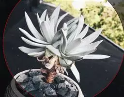 蓝黛莲是一种景天科厚叶草属植物。叶片呈略扁的圆柱形,排列成莲座状;颜色为灰绿色,…