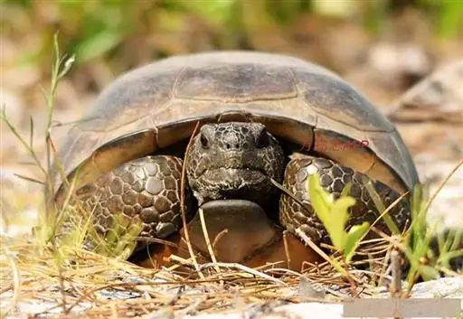 哥法地鼠龟(学名:Gopherus polyphemus):又名佛州地鼠龟,最大甲长38厘米。前肢第1双趾爪根部至第3双趾爪根部的间隔同于其后肢第1双趾爪根部至第4双趾爪根部的间隔。背甲略带黄色,平滑而细长。头部硕大,前端较钝,棕灰色;眼睛的虹膜为深棕色。后脚比前脚小。雄性的腹甲内凹。
