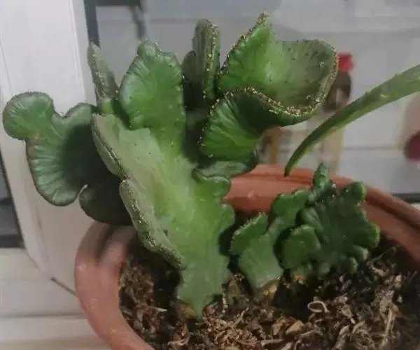 如出现“返祖现象“,即鸡冠状缀化茎退化为柱状茎时,应迅速将柱状茎剪除,以免影响观赏效果。避免出现返祖现象,必须让植株多见阳光,宁干勿湿,少施肥,保持鸡冠状的变态茎形态。