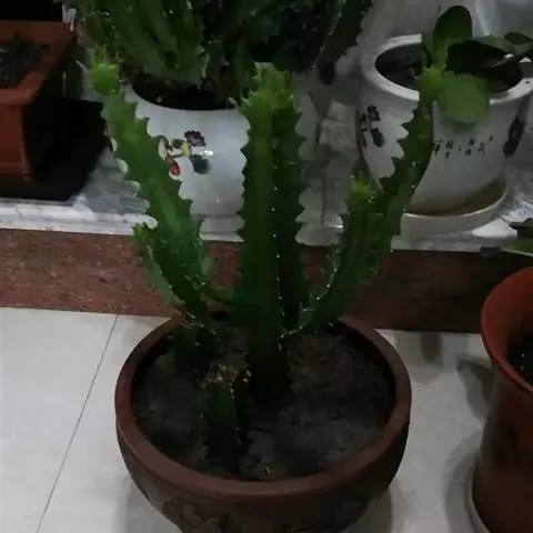 水分。麒麟掌比较耐旱,平时浇水以宁干勿湿为原则。当盆土干硬发白、叩击盆壁听到清脆的响声浇透水。冬季浇水比平时还要减少,在室温15℃至18℃的室内,每10天左右浇一次透水即可。浇水过多不但容易发生返祖现象,还会导致根系窒息而死。