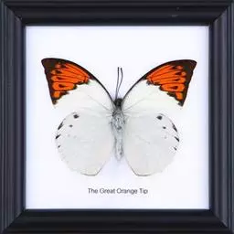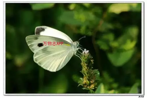 成虫:翅展45-60mm。体躯细长,背面黑色,头部和胸部被白色绒毛;腹面白色。触角端部匙形。翅正面白色;前翅的前缘脉黑色,顶角有三角形黑斑,并与外缘的黑斑相连而延伸到Cu2脉以下,黑斑的内缘呈锯齿状;亚端在m3室及cu2室各有1个黑斑,后翅前缘中部有1个黑斑,这3个黑斑均较菜粉蝶大而圆;后翅外缘各脉端均有三角形的黑斑。翅反面白色或乳白色,除前翅2枚黑斑尚存外,其余斑均模糊。雌蝶斑纹较明显,反面基部的黑鳞区较雄蝶宽。