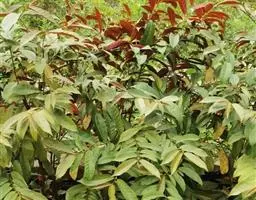 金英常绿灌木,株高约50-160厘米,嫩茎红色。叶片绿色,对生,椭圆形,先端尖,基部楔形,全缘。…