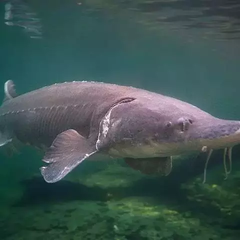 鸭嘴鱼学名:美国匙吻鲟(又名鸭嘴鲟),英文名:Polyodonspathala,匙吻鲟,学名“美国匙吻鲟”原产美国密西西比河流域,是一种大型淡水经济鱼类,属鲟形目匙吻白鲟科。是从3亿年之前(即恐龙时期)就在地球上生活,并存留下来的一种珍稀鲟鱼类,是世界上匙吻鲟科中仅有的两个品种之一。它与中华鲟以及长江水域中的白鲟同属鲟形目白鲟科。