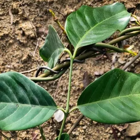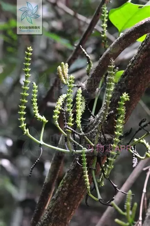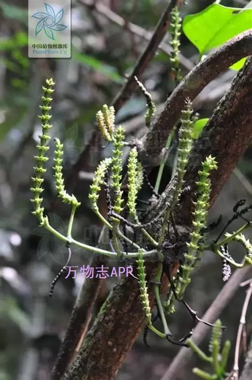 罗浮买麻藤,藤本,茎枝圆形,皮紫棕色,皮孔浅不显著。产于广东。