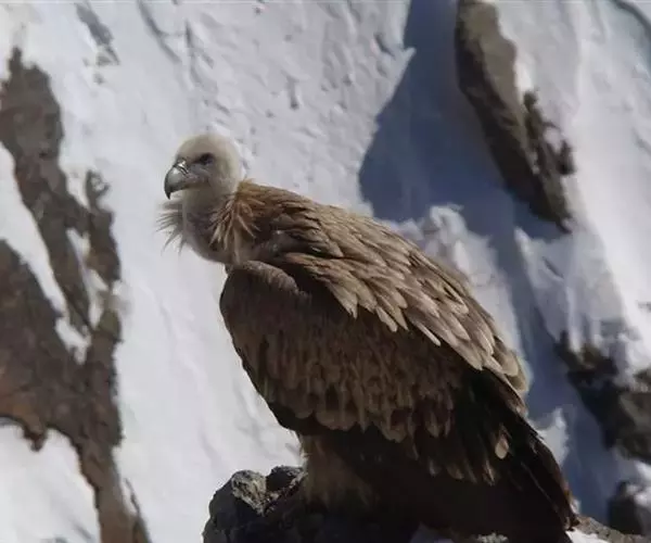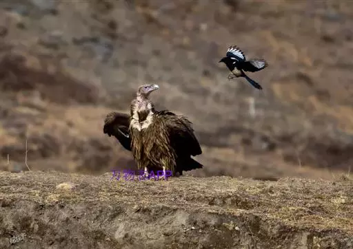 高山兀鹫(学名:Gyps himalayensis):是隼形目鹰科的鸟类,大型猛禽,全长约110厘米。羽毛颜色变化较大,头和颈裸露,稀疏的被有少数污黄色或白色像头发一样的绒羽,颈基部长的羽簇呈披针形,淡皮黄色或黄褐色。上体和翅上覆羽淡黄褐色,飞羽黑色。下体淡白色或淡皮黄褐色,飞翔时淡色的下体和黑色的翅形成鲜明对照。幼鸟暗褐色,具淡色羽轴纹。