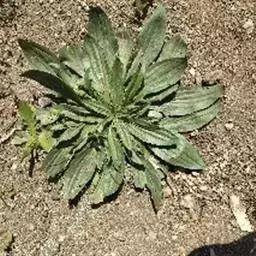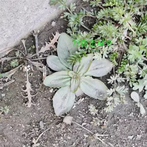 一年生或二年生草本。直根长,具多数侧根,多少肉质。根茎短。叶基生呈莲 平车前 座状,平卧、斜展或直立;叶片纸质,椭圆形、椭圆状披针形或卵状披针形,长3-12cm,宽1-3.5cm,先端急尖或微钝,边缘具浅波状钝齿、不规则锯齿或牙齿,基部宽楔形至狭楔形,下延至叶柄,脉5-7条,上面略凹陷,于背面明显隆起,两面疏生白色短柔毛;叶柄长2-6cm,基部扩大成鞘状。