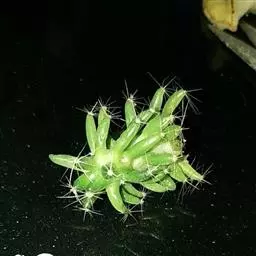 松霞是仙人掌科乳突球属的多年生肉质植物。单个球体小,呈圆筒状,暗绿色,疣状突起小,呈圆形,刺座无毛,…