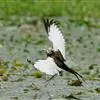 凤头麦鸡:中型涉禽,体长29-34厘米。头顶具细长而稍向前弯的黑色冠羽,像突出于头顶的角,甚为醒目。…