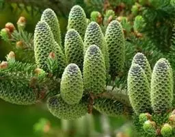 铁坚油杉10月中下旬球果成熟,当种鳞转为淡黄色即可采收。过迟,种鳞松散与种子同时脱落。球果采下后,堆放室内,堆高不超过50厘米,使种鳞开裂;因含油丰富,不宜曝晒,以免油化而降低发芽率。球果中部的种子大而饱满,质量较好,基部的种子细小,质量较差,脱粒后,可用粗孔筛筛选,再堆放通风干燥的室内阴干后干藏。每百公斤球果可得纯净种子12-15公斤,每公斤种子20000-24000粒,发芽率60%以上。