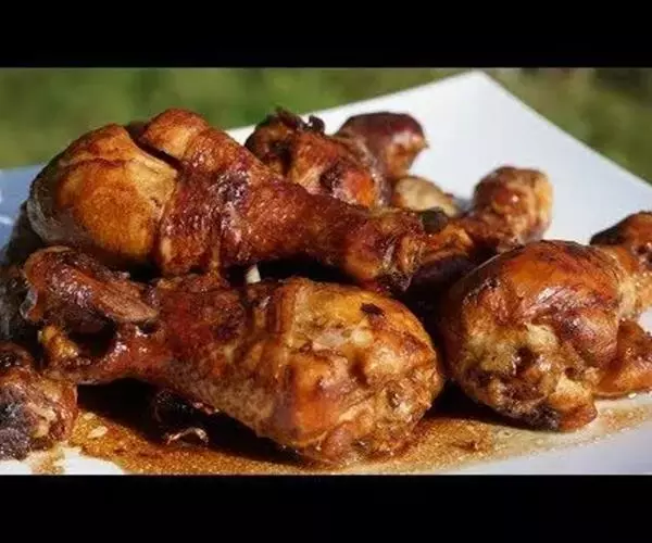 ④烧油至大热,放入鸡腿炸至微黄色,转中火再炸至熟(约10至15分钟),捞出,滤去油份,便可供食用。