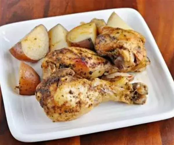 鸡下腿5只(约500克重),干葱2粒,姜汁1汤匙,靓虾酱1匙。糖半茶匙,酒1汤匙,生粉半汤匙配成腌料。