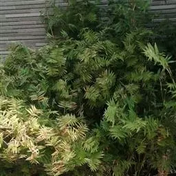 凤尾竹 Raeusch. ex Schult. ’Fernleaf’ R. A. Young)是禾本科,簕竹属孝顺竹的变种。植株较高大,杆高可达6米,竿中空,小枝稍下弯,下部挺直,绿色;竿壁稍薄;节处稍隆起,无毛;叶鞘无毛,纵肋稍隆起,背部具脊;叶耳肾形,边缘具波曲状细长繸毛;叶舌圆拱形,叶片线形,上表面无毛,下表面粉绿而密被短柔毛,小穗含小花,中间小花为两性;外稃两侧稍不对称,长圆状披针形,先端急尖;内稃线形,脊上被短纤毛,花药紫色,子房卵球形,羽毛状。成熟颖果未见。原产中国,华东、华南、西南以至台湾、香港均有栽培。凤尾竹喜温暖、湿润和阳光充足的环境,耐寒。宜土层深厚、肥沃、疏松的微酸性壤土。该种观赏价值较高,宜作庭院丛栽,也可作盆景植物。全草或根入药,味淡、微苦,性寒,有清热利湿、凉血止血、消肿解毒功效,可治痢疾、泄泻等多种病症。凤尾